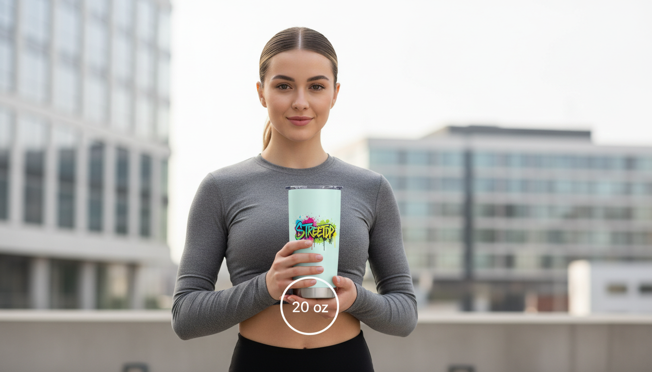 The wide, easy-to-grip design fits comfortably in your hand and is equipped with a spill-resistant lid, making it a hassle-free travel companion. Say goodbye to disposable cups and embrace sustainability with our Travel 20oz Fat Tumbler.